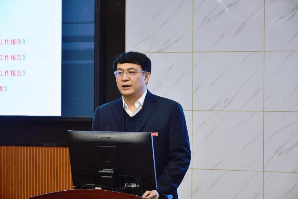 王修华院长从主要措施及成效、主要目标完成情况、下年度工作计划三个方面作院长工作报告。王院长指出,过去一年学院圆满地完成学校下达的年度任务目标,取得优秀的好成绩,尤其在高层次人才、国家级教学成果奖、高水平论文成果、国家级项目、高层次科研平台等方面取得了历史性突破,是全体教职工统一思想促共识、凝心聚力谋发展的结果。面对新的一年,王院长表示,学校第十届党代会刚刚落下帷幕,明确了学校实现高质量发展的内在要求、努力方向和使命任务,学院下一步将学习贯彻好第十次党代会精神,把思想和行动统一到党代会精神上来,同心协力推动学院高质量发展。