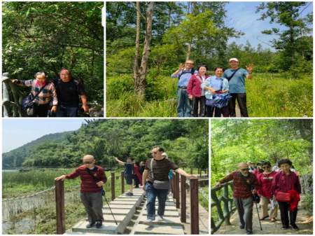 湄江的自然景观类型为岩溶地貌,有着千姿百态的地表和地下景观,具备了建立国家地质公园的基本条件。在湄江风景区,老同志们漫步在塞海湖旁的亲水栈道,欣赏着绝壁美景;在国家地质博物馆,听讲解员介绍当地的地质地貌,风土人情;女老师们沉浸在花海里拍照留念;在仙人府溶洞里,大家头顶钟乳石,沿着溪水慢步,纷纷在瀑布前打卡合影,观看着大自然在高山上雕刻出来的“MJ”这个湄江的缩写;有的老师甚至爬上了更高处,领略湄江的美好风光。参观完毕,老师们品尝着当地的风味美食,流连忘返。