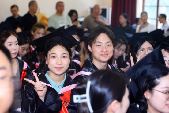 “麓山巍巍,湘水泱泱......”在悠扬的校歌合唱声中,学位授予仪式落下帷幕。