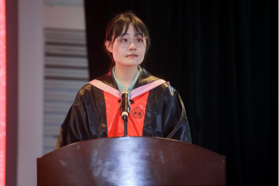 2024届本科生毕业代表郝心蕾、研究生毕业代表唐林依次发言,回顾在湖大金统的青春岁月,感恩金融黄埔的悉心培养,感谢一路上师友的热心帮助,希望大家在未来的旅程中不忘金统时光、继续砥砺前行。