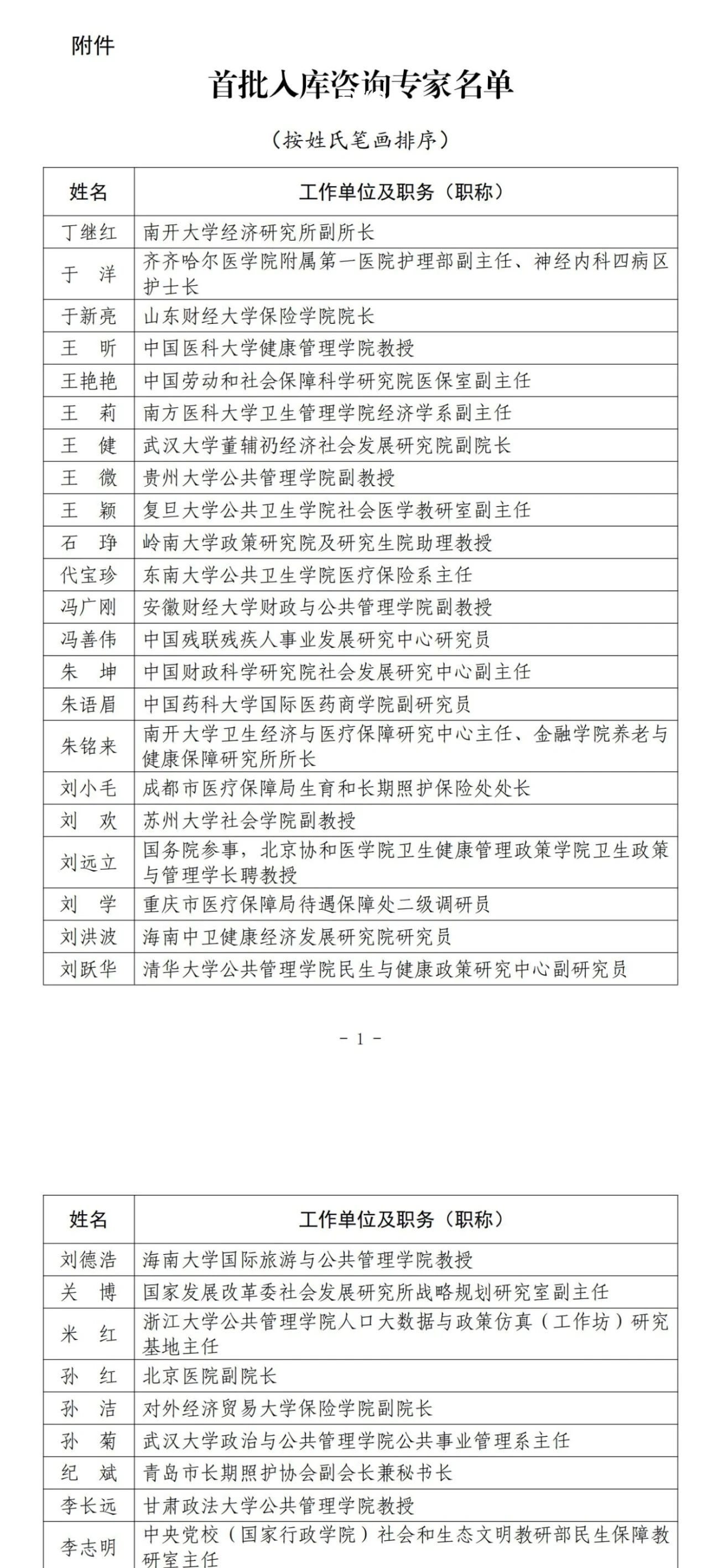 为充分发挥专家队伍在长期护理保险制度建设领域的决策咨询作用,经个人自荐、严格审查并研究审定,现将首批入库咨询专家名单予以公布。