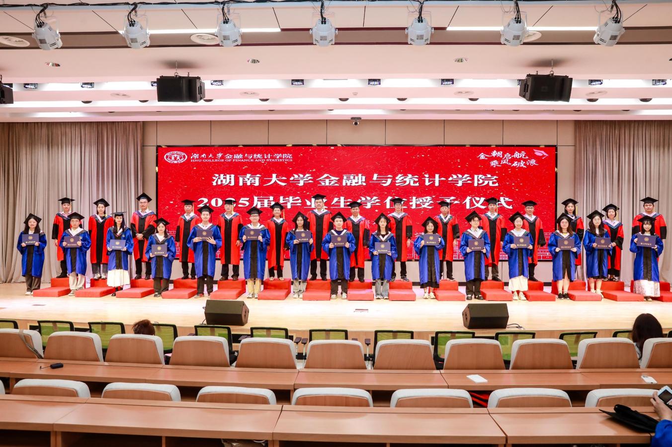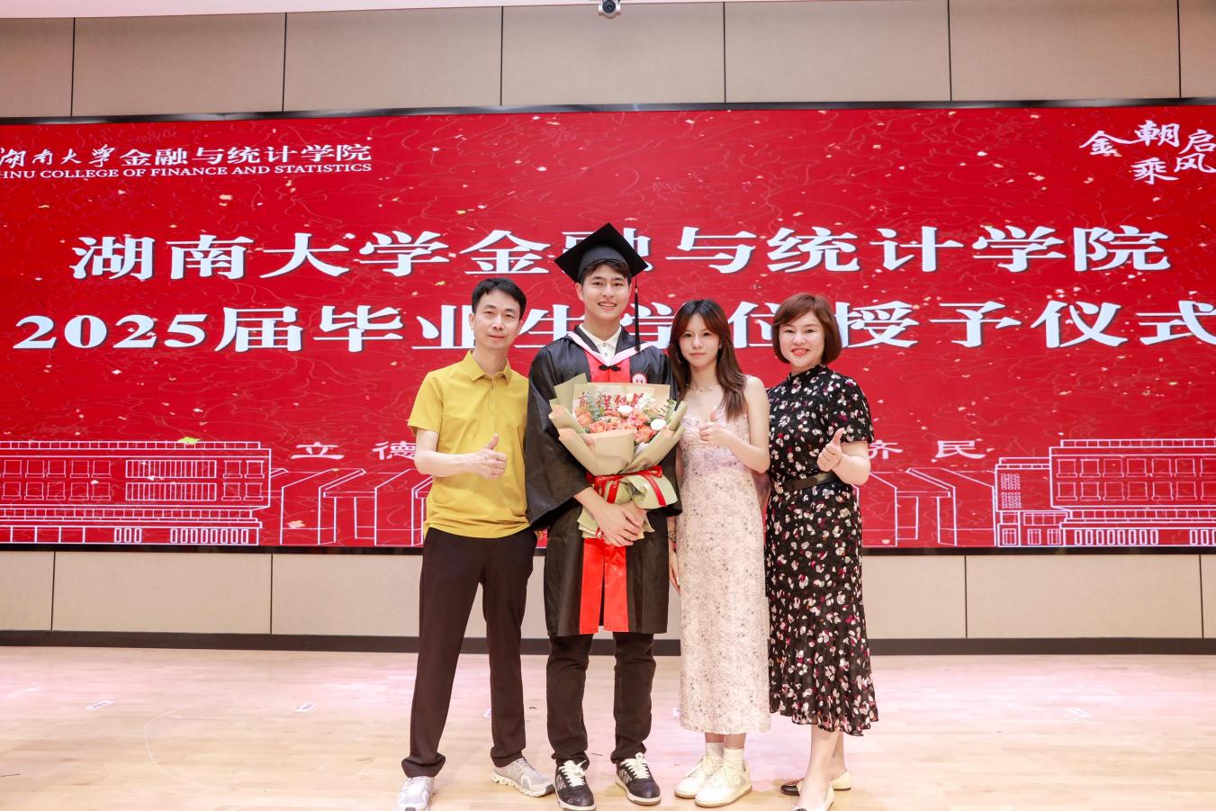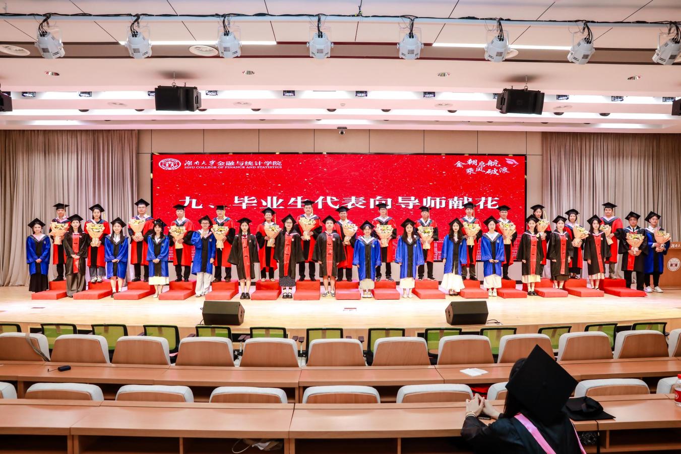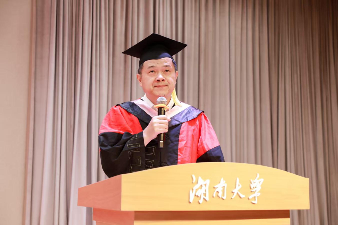 2025届毕业本科生代表陈婉蓉、毕业研究生代表的张人中依次发言,回顾、怀念湖大金统的青春岁月,感恩金融黄埔的悉心培养和热心帮助,希望大家在新的赛道上继续拼搏奋斗。