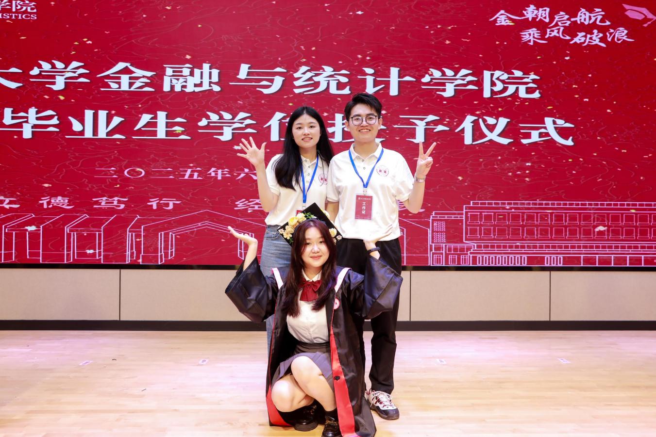 王修华指出,同学们今天毕业,面对人工智能重塑行业、浮躁侵蚀初心的变革时代,需要置身其中,在平凡的人生底色中坚守初心、铸就不凡。他强调,一是以平凡为基,心向家国苍穹。做好一个个“力所能及”的平凡小事,在金融一线、科研阵地、基层舞台上,做时代的追光者。二是于毫厘处深耕,在时光里成长。愿你们学会与“平凡”和解,在日复一日的深耕中积蓄力量,时间终会奖励长期主义者。三是在喧嚣中修篱,于浮世中见真。建立清醒的自我认知,守住初心,按自己的节奏,修炼出“慢生长”的生存智慧。四是聚平凡之光,共绘时代新篇。希望你们拥有“选择同行者”的智慧,与“价值观同频者”同行,与“视野开阔者”同行,与“心怀大我者同行”,让个人的微光融入时代的星河,共同照亮属于金统人的壮阔未来。