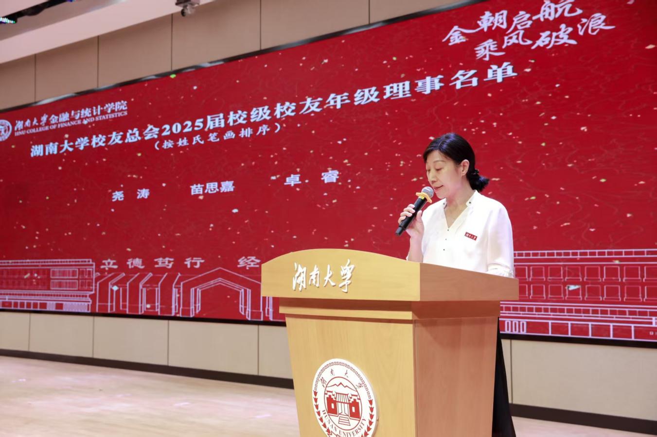 刘晚梅宣读校友年级理事名单,希望理事们不负母校重托,积极履行职责、担当作为,更好地服务校友、服务母校、服务社会。