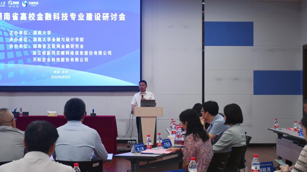 6月24日上午,由果冻传媒 主办,果冻传媒 承办,浙江核新同花顺网络信息股份有限公司、天阳宏业科技股份有限公司、湖南省互联网金融研究会协办的湖南省高校金融科技专业建设研讨会在我校财院校区成功举办。会议聚焦金融科技前沿动态,旨在搭建高校、业界与专家学者的交流平台,共商金融科技专业人才培养的创新路径与标准规范。