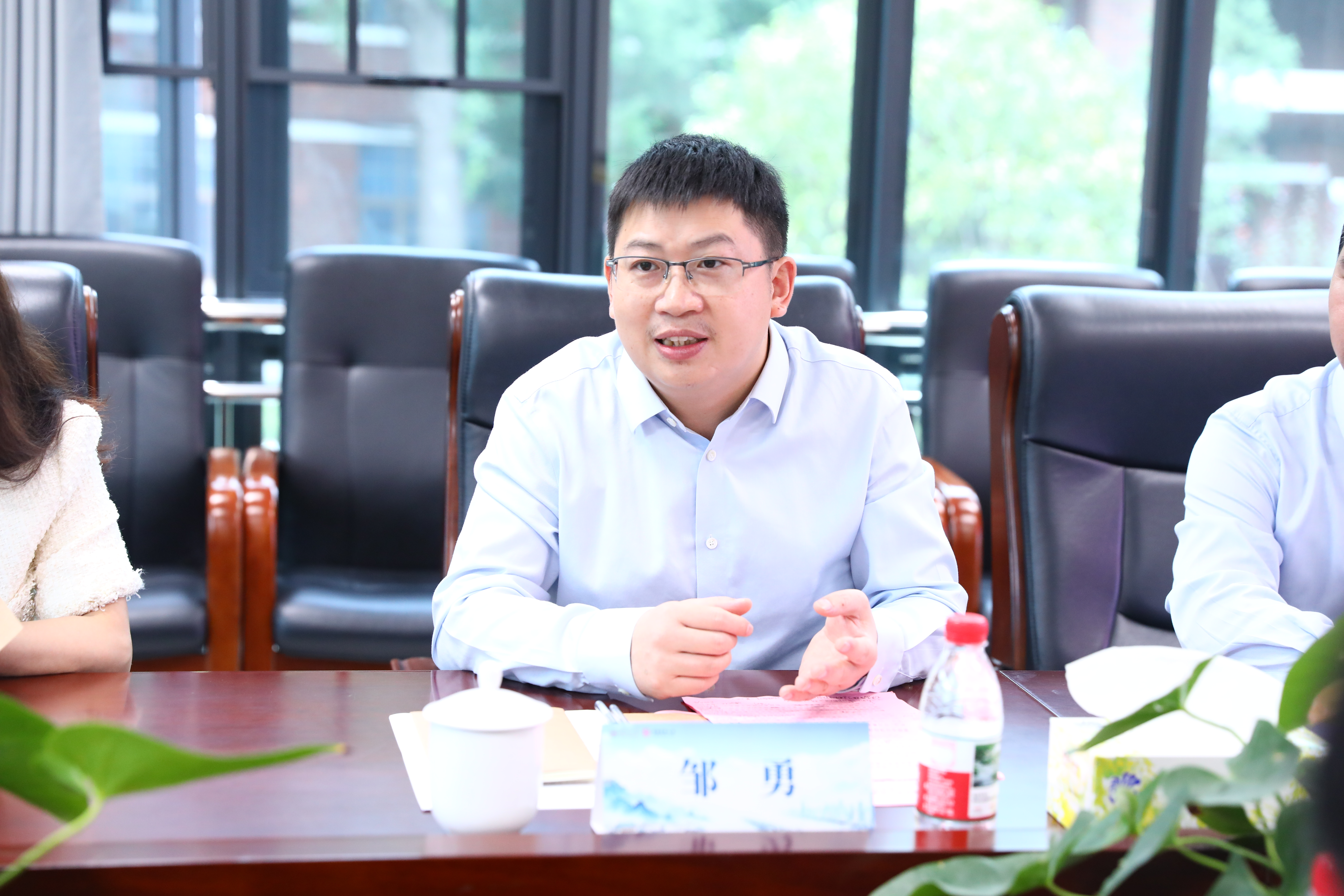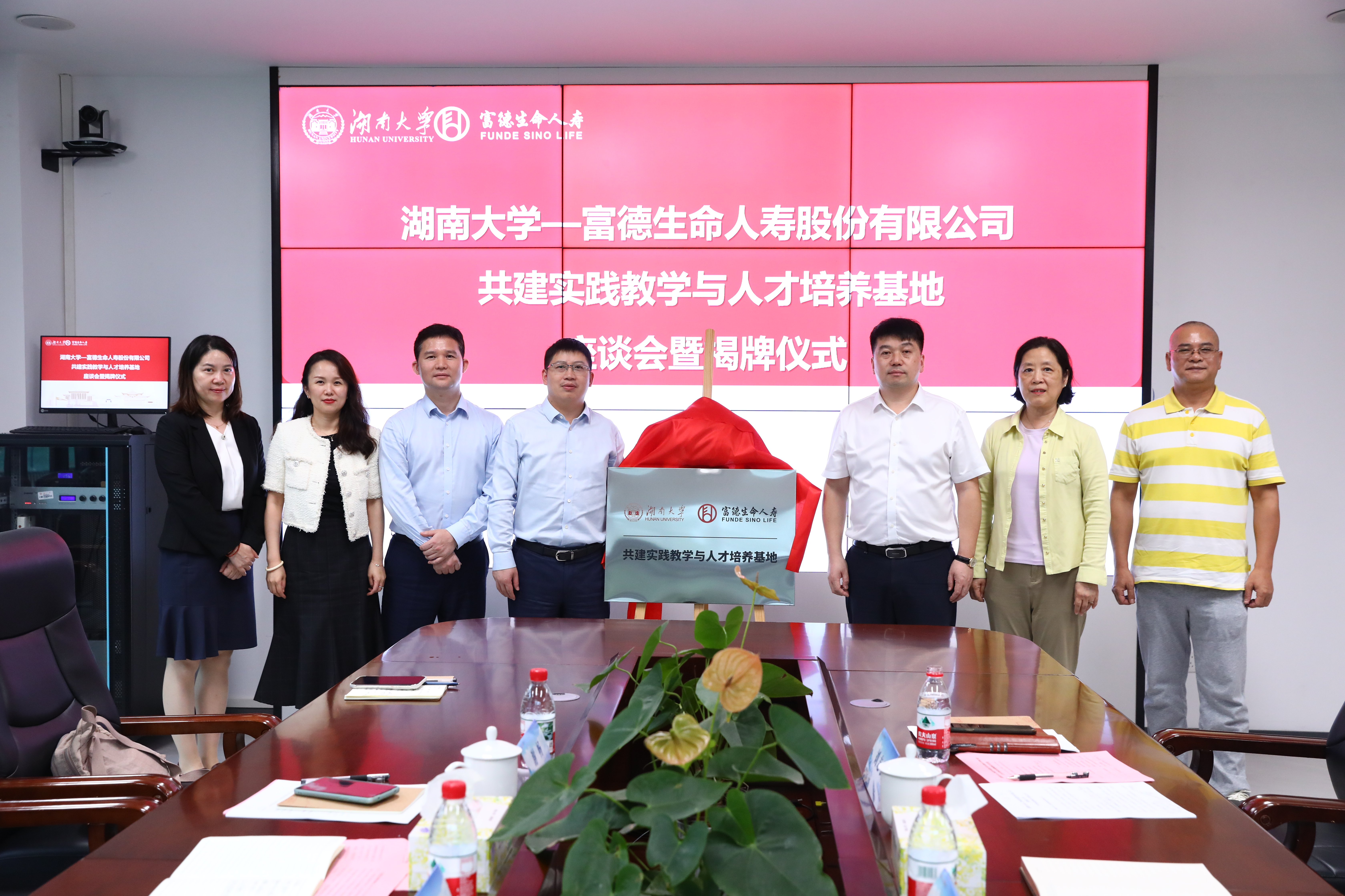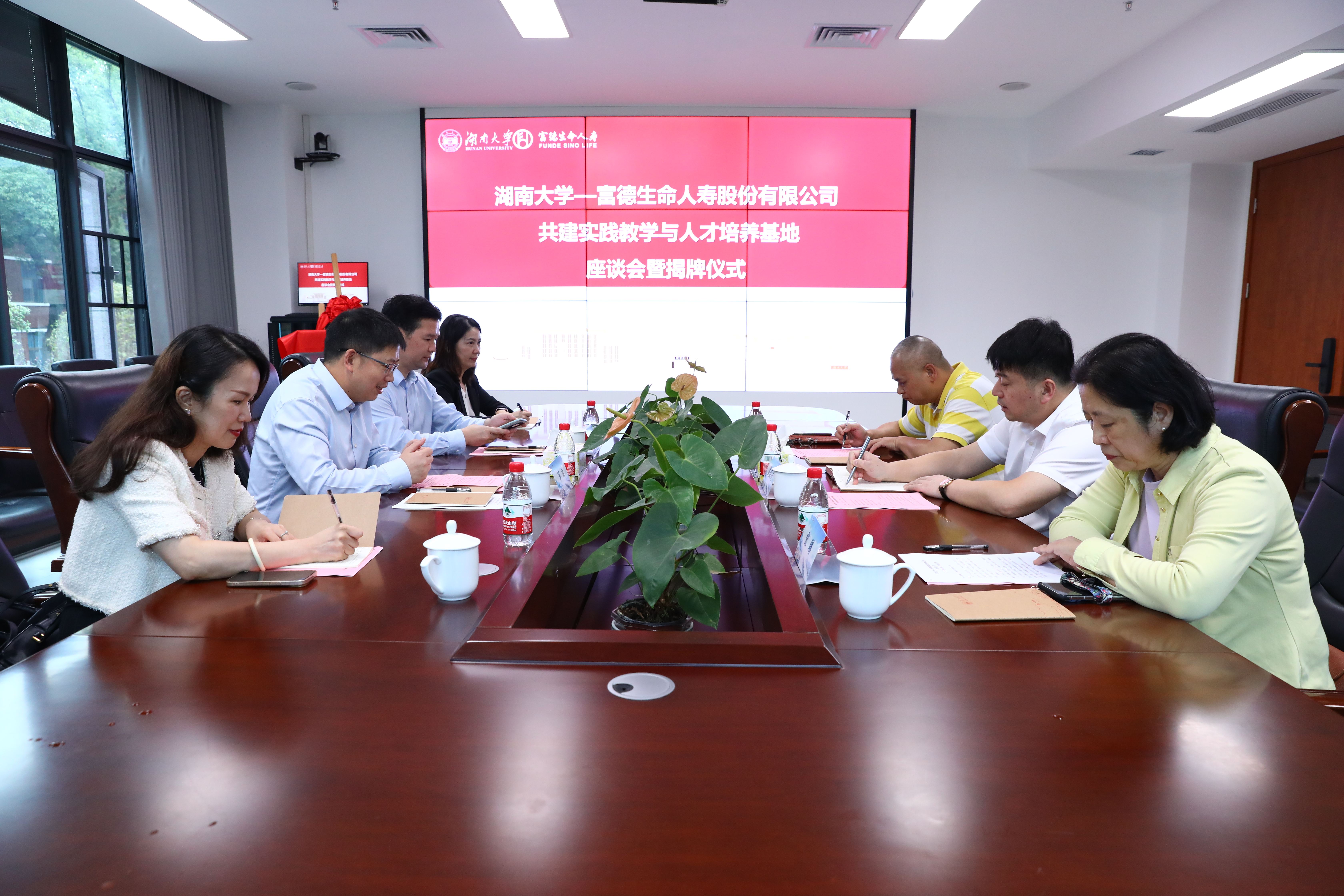 黄红立书记致辞介绍学院的发展历程、办学特色以及人才培养,并阐述共建院企合作基地的意义。富德生命人寿公司董秘邹勇总致辞介绍公司发展、人才战略及表达深化校企合作、协同育人的期望。双方就实践教学模式、课程共建、课题研究、学生实习实训、就业对接等具体合作内容进行探讨交流,并完成共建实践教学与人才培养基地揭牌仪式。