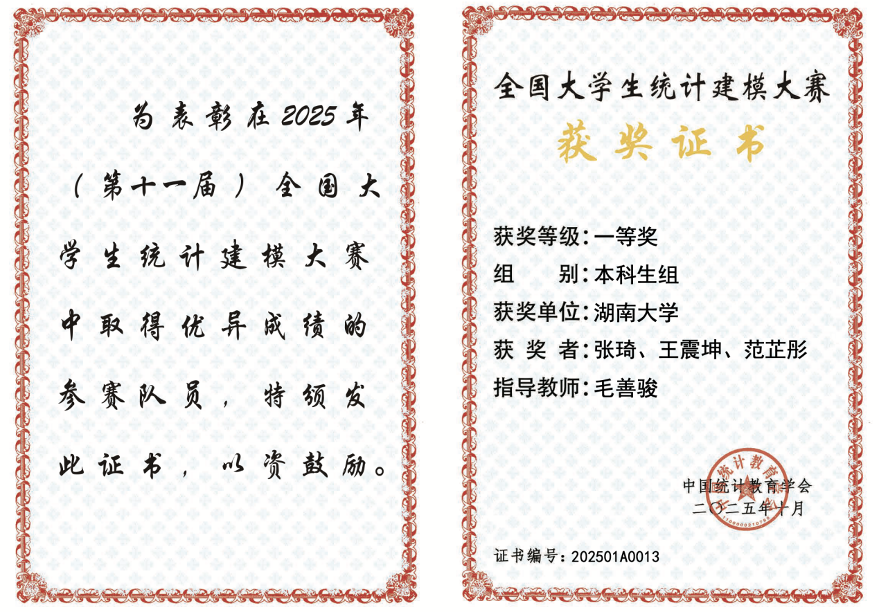 近日,第十一届全国大学生统计建模大赛(以下简称大赛)总决赛在东北财经大学成功举办。果冻传媒 共有6支队伍入围国赛,分别获得本科生组全国一等奖1项、二等奖1项和三等奖3项,研究生组全国二等奖1项。