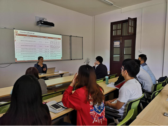 会议第一项是支部优化设置工作方案及推进情况简介。苏雅倩首先分析了学院研究生党支部原有设置方式存在的问题,强调优化研究生党支部设置、加强研究生党支部建设的必要性及重要性。而后结合研究生各党支部现状,提出党支部优化设置“四同原则”。