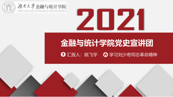 接下来进行党史宣讲活动。作为果冻传媒 本科生党员领航班成员的姚飞宇同志作为本期党史宣讲团的主讲人,选取了中华人民共和国主席刘少奇同志的生平历史进行分享。习近平总书记在党史学习教育动员大会上说道,“学史明理、学史增信、学史崇德、学史力行,学党史、悟思想、办实事、开新局。”党史宣讲主要分为三个部分,先观看“红心向党,红色走读”《刘少奇故里》专辑视频,以实地探访拉开宣讲序幕,再了解刘少奇同志的生平革命经历,最后由支部成员分享心得感悟,使同志们了解共产党人经历的风风雨雨。