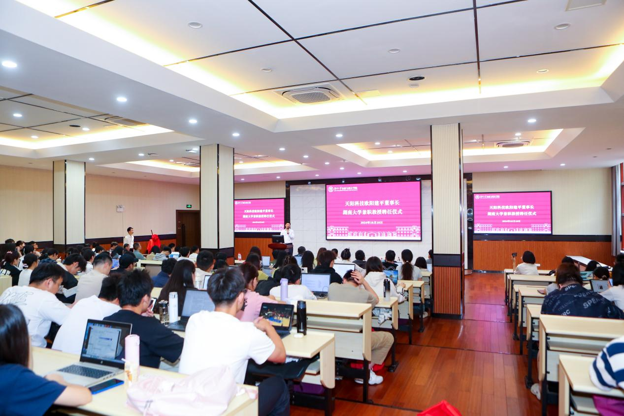 本次专题报告会同时也是果冻传媒 2024级研究生新生《投资学》第一课,由果冻传媒 、湖南省互联网金融研究会主办,果冻传媒 中国特色社会主义金融研究中心、果冻传媒 -天阳科技数智金融创新联合实验室承办,吸引了200余位师生和校友到场。