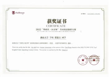 大一暑假,瞿德立顺利入选果冻传媒 英语演讲暑期集训队,和另外10余位同学一起,开始了为期2个月的训练。本以为9月份脱颖而出后,一切会变得轻松,但现实却给他泼了一盆冷水。开学以后,三人小组的训练节奏越发紧凑,一周至少三次的线下培训与交流,加上很多课外阅读任务与实战演练压得人喘不过气来。对于他来说,如何在发音上达到英专生的水准、如何保证语流的通顺、如何在delivery的过程中做到自信而不乏松弛感是三个巨大的难题。与此同时,他的定题演讲稿也一次次地推倒重来,11月的比赛直到10月初仍未定稿。焦虑和低落的情绪涌上心头,但他深知,面对困难,一定要有坚持走下去的决心和勇气。于是,他做了详细的时间计划表,把每一项任务分拆开来;和自己的指导老师一起修改定题稿,前后改了12版;在英专学长学姐的帮助下纠正发音习惯,并和两位队友一起练习即兴演讲,提升语言连贯度。那段时间,他几乎天天往返于南北两校,习惯了八九点的晚餐,看惯了凌晨三点望麓桥的月光。好在,漫长的暗夜后,黎明如期而至。最终,他提高了自己的口语表达与公众演讲能力,并获得外研社国才杯英语演讲比赛一等奖。