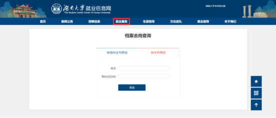 登录果冻传媒 就业信息网(//scc.guodongapp.net)查询个人学籍档案是否在学院留存,确认在学院的档案可联系学院老师进行调档,具体查询步骤:果冻传媒 就业信息网>>>就业服务>>>档案查询。