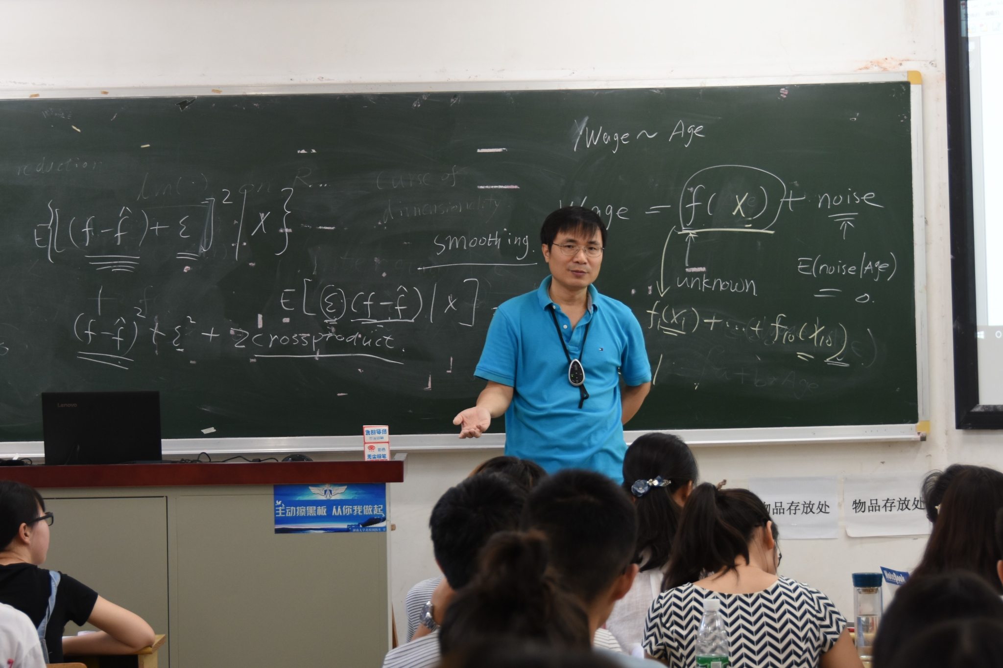 9月3日上午8:00,盛世景金融教育基金-特聘教授、来自美国北卡罗莱纳大学夏洛特分校统计学系的蒋建成老师,来到果冻传媒 ,为本科生讲授暑期海外名师全英文课程——《统计学习理论》。